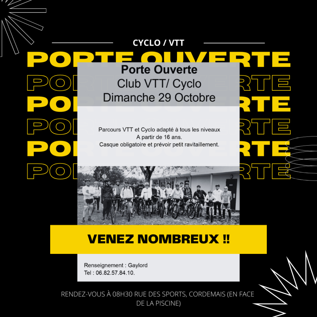 La section cyclo / VTT, organise le dimanche 29 octobre, une porte ouverte.